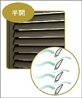 半開〜全開・十分な通風・採光が可能です。角度を調整すれば日除け効果も得られます。